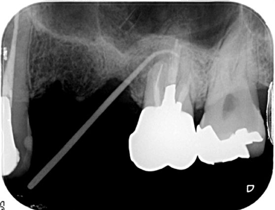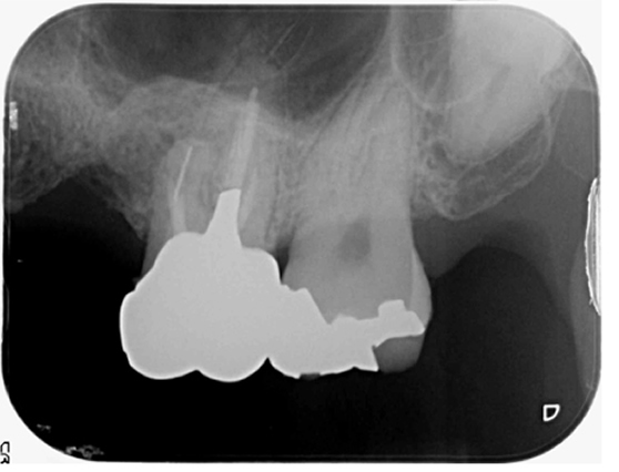 根管治療で破折ファイルを除去。経過観察2年で良好な経過と治癒を確認