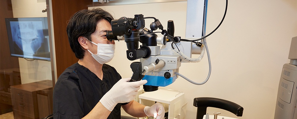 当院ではマイクロスコープを使い、確実な治療をすると共に、ラバーダム等の使用による感染予防を徹底することでより確実な根管治療が行えます。